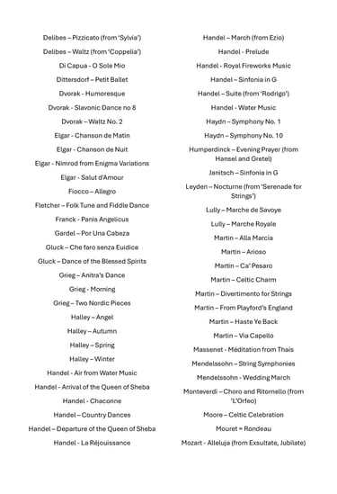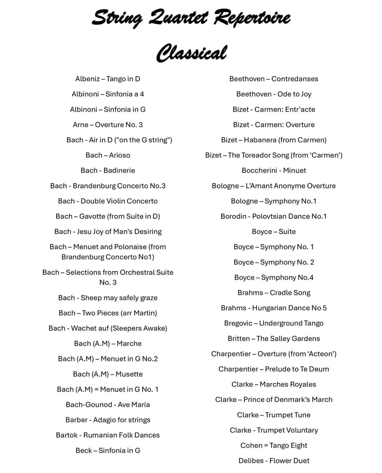 Violinist, String Quartet, String Trio, String Duo, Conductor, Arranging service